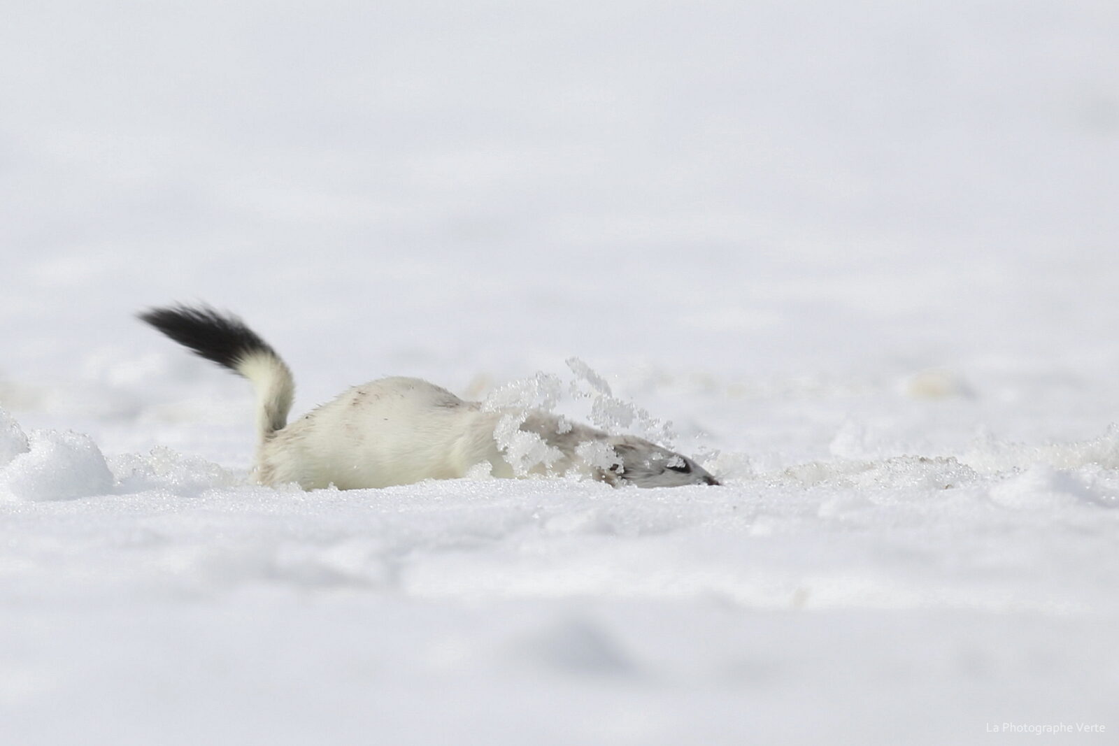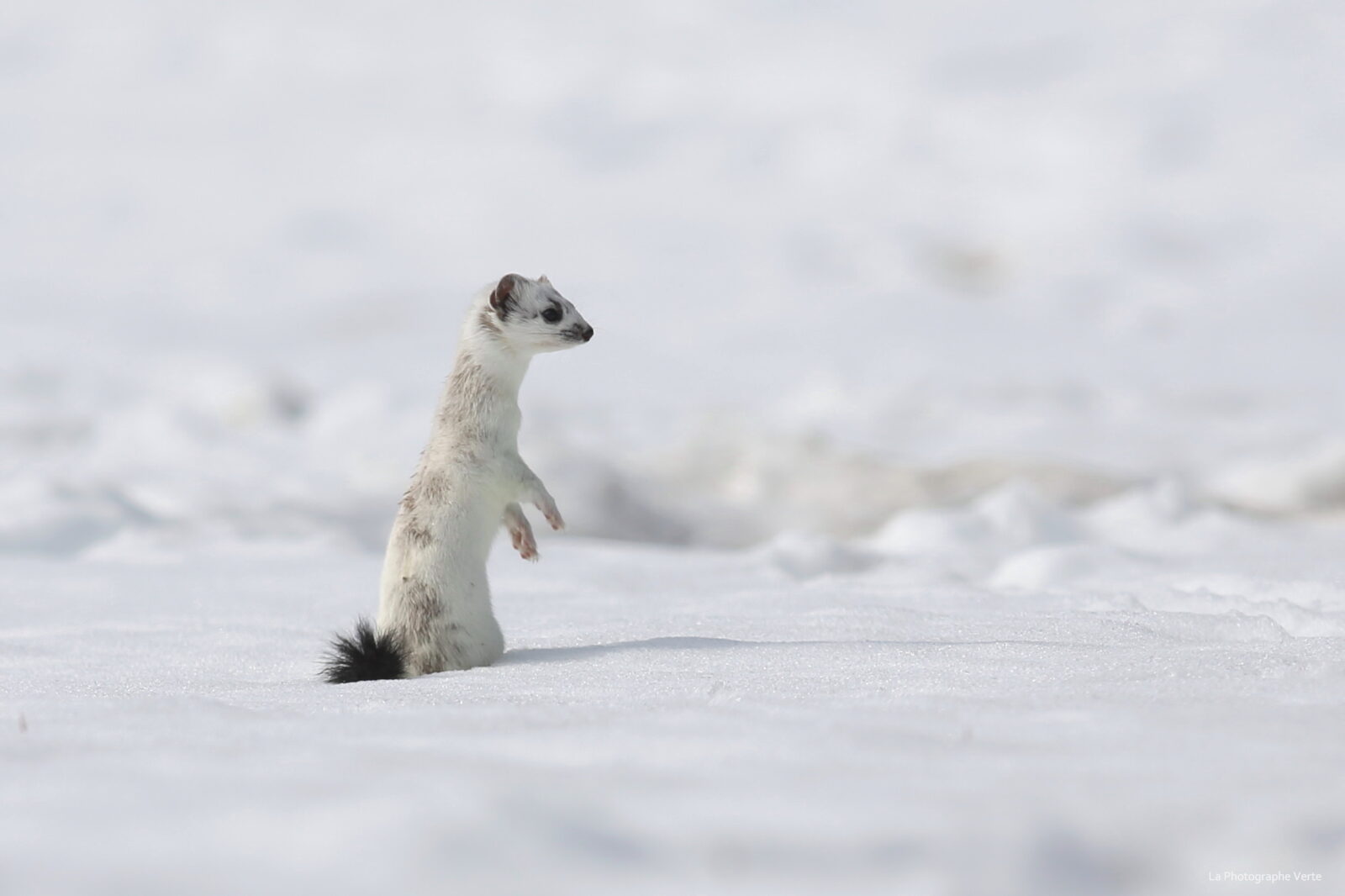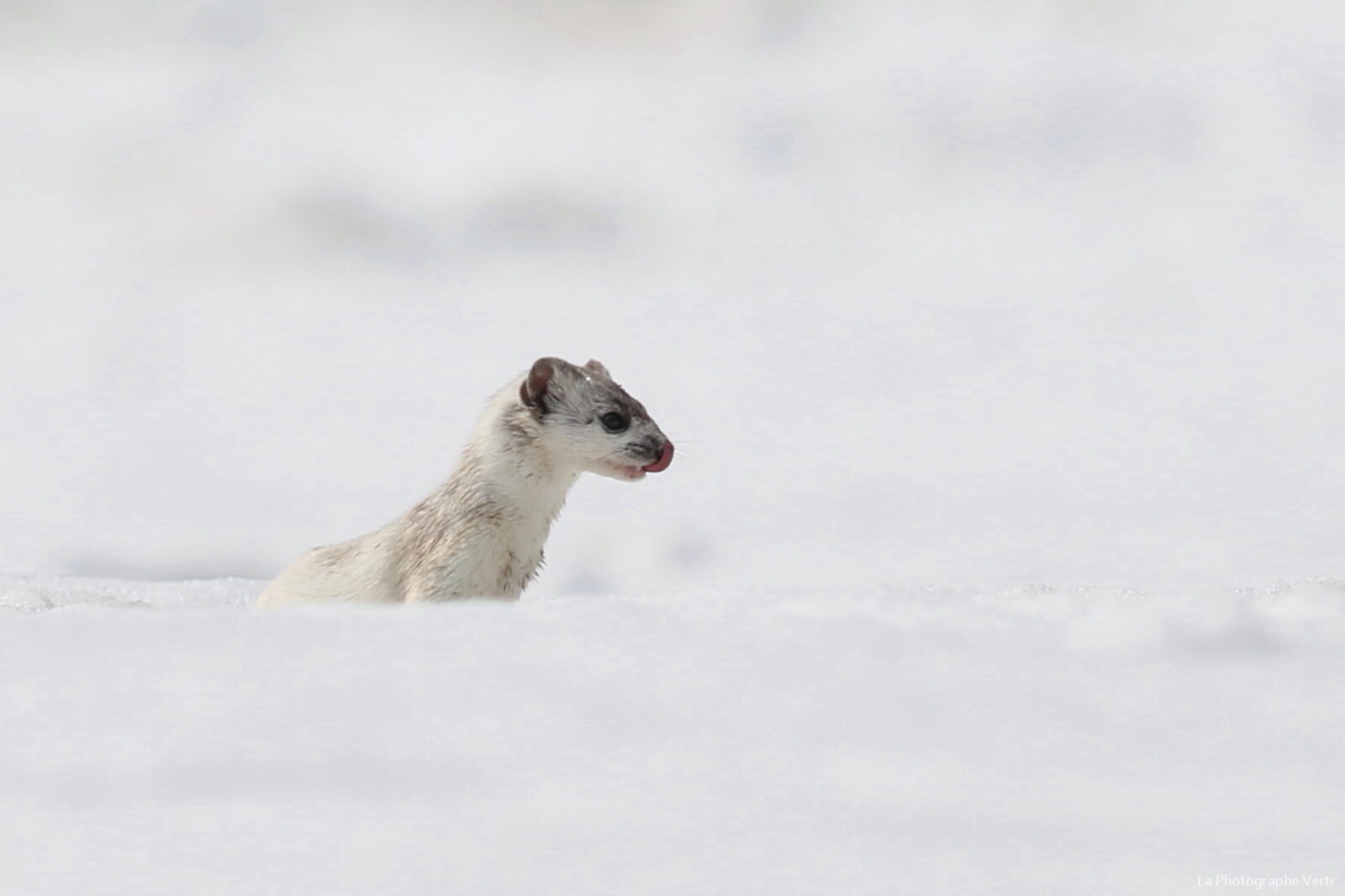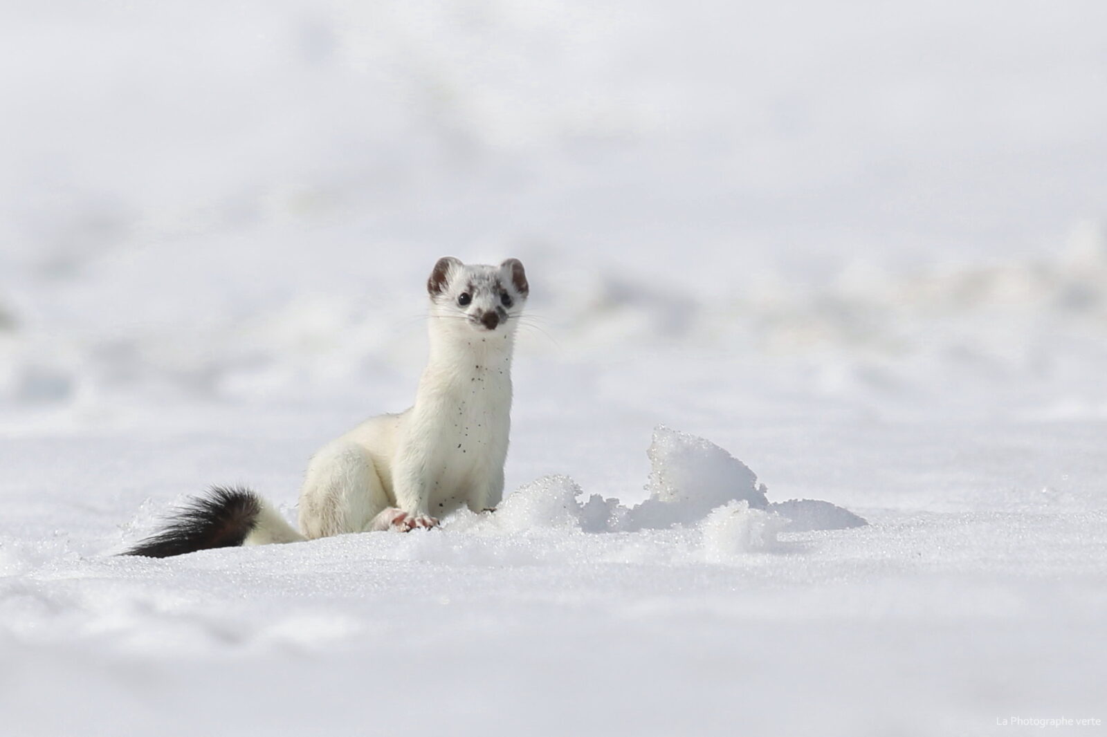Belle rencontre dans la Vallée de Joux. Nous sommes restés une demi-heure en compagnie de cette hermine (Mustela erminea) qui s’amusait dans la neige.